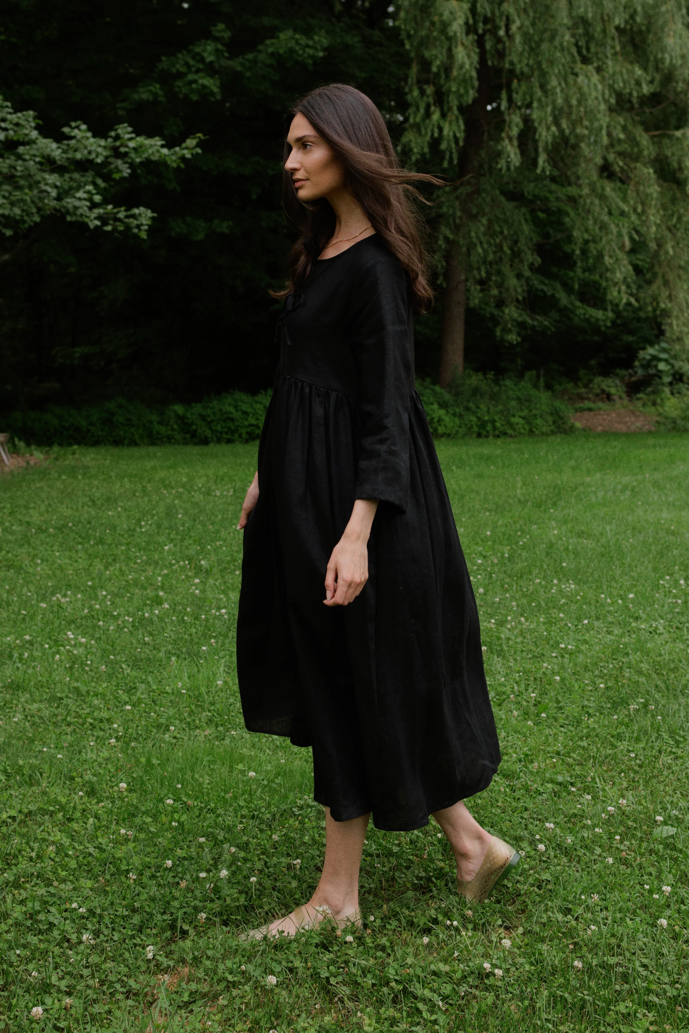 The forever dress you'll reach for again and again. It has those romantic bell sleeves that give it a bit of witchy charm and a slightly empire waist that honors your natural shape. The relaxed skirt moves with you through every season ā perfect with sandals now, boots later. And yes, it has pockets (obviously). The kind of dress that collects compliments everywhere you go.